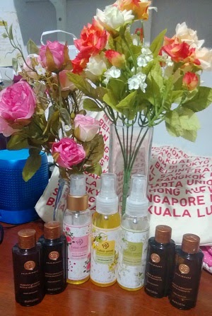 ในชุดประกอบด้วยน้ำมันขนาด 60 ml. 4 ขวด มีกลิ่นแตกต่างกันไป คิดราคามาแล้ว แพงกว่าขวดใหญ่นะคะ แต่ว่าตอนที่ดิฉันไปซื้อน่ะ ที่ร้านมีกลิ่นให้เลือกเยอะมากจนเลือกไม่ถูก เลยเลือกแบบหลายกลิ่นมาแทนค่ะ