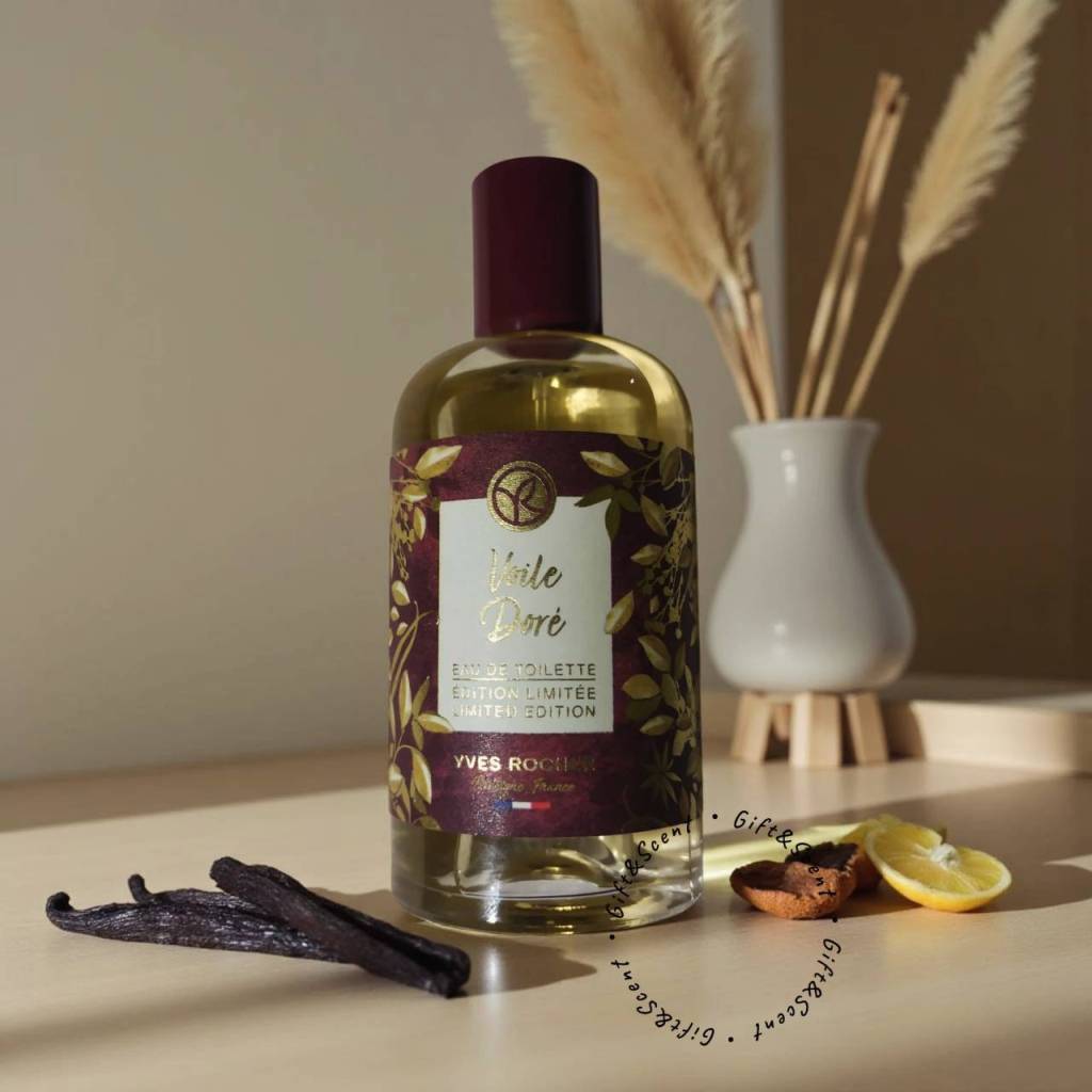 อย่าง Voile Doreขวดนี้ เป็นลิมิเต็ดของปี 2023 (พ.ศ.2566) ค่ะ ราคาเต็มช่วงนั้นน่าจะพันนิดๆ ถ้ามีโปรส่วนลด ก็อาจจะได้ที่ราคาแปดร้อยกว่าบาทค่ะ ปริมาณ 100 มิล ถือว่าราคาน่ารักเลยแหละ โทนกลิ่นของ Voile Dore มาในแนวกรูมองต์และวู้ดดี้ เป็นกลิ่นของฝักวานิลลาหอมนุ่ม คลอมากับกลิ่นไม้หอมจางๆและกลิ่นผลไม้อบแห้ง แซมด้วยกลิ่นเครื่องเทศนิดๆ ตามโทนกลิ่นของช่วงคริสต์มาสค่ะ